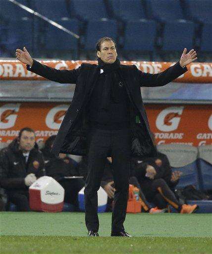 Roma coach Rudi Garcia calls out to his players during a Serie A soccer match between Roma and Empoli, at Rome's Olympic Stadium, Saturday, Jan. 31, 2015. (AP Photo/Andrew Medichini) The Associated Press