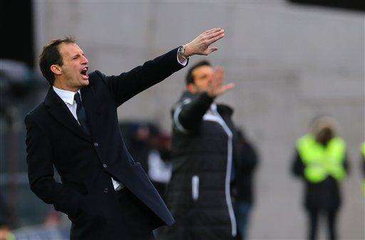 Juventus' coach Massimiliano Allegri gives instructions to his players during the Serie A soccer match between Udinese and Juventus at the Friuli Stadium in Udine, Italy, Sunday, Feb. 1, 2015. (AP Photo/Paolo Giovannini) The Associated Press