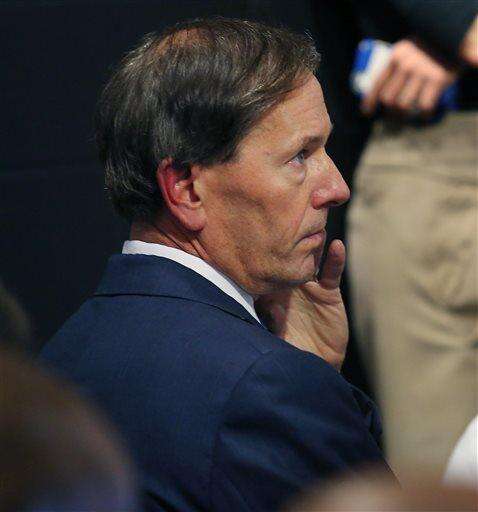 Orlando Magic chairman Dan DeVos watches during a news conference after the firing of Orlando Magic head coach Jacque Vaughn, Thursday, Feb. 5, 2015 in Orlando, Fla. (AP Photo/Orlando Sentinel, Stephen M. Dowell) MAGS OUT; NO SALES The Associated Press