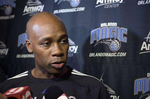 FILE - In this Sept. 30, 2014, file photo, Orlando Magic head coach Jacque Vaughn answers questions from reporters during NBA basketball training camp practice in Orlando, Fla. The Orlando Magic fired Jacque Vaughn as coach Thursday, Feb. 5, 2015, after two and half seasons, ending the tenure of the first-time head coach brought in to help rebuild the franchise.(AP Photo/Phelan M. Ebenhack, File) The Associated Press