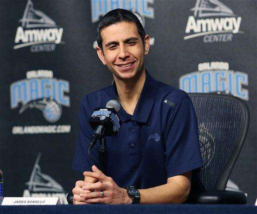 Orlando Magic interim head coach James Borrego smiles during a news conference after the firing of Orlando Magic head coach Jacque Vaughn, Thursday, Feb. 5, 2015 in Orlando, Fla. (AP Photo/Orlando Sentinel, Stephen M. Dowell) MAGS OUT; NO SALES The Associated Press