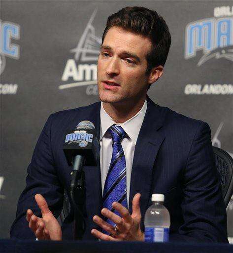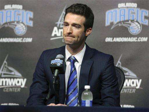 Orlando Magic general manager Rob Hennigan speaks during a news conference after the firing of Orlando Magic head coach Jacque Vaughn, Thursday, Feb. 5, 2015 in Orlando, Fla. (AP Photo/Orlando Sentinel, Stephen M. Dowell) MAGS OUT; NO SALES The Associated Press