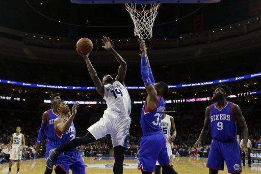 Hornets: Assistant coach Patrick Ewing sat in the same seats as his college team, Georgetown, did earlier Saturday in a 69-53 loss to Villanova. ... Henderson, a Philadelphia-area native whose dad played for the 76ers, entered shooting 33.3 percent from the field in his career in Philadelphia.