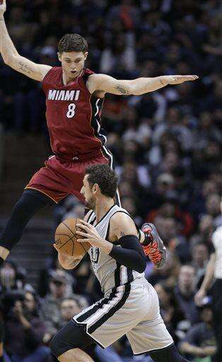 Heat: F Udonis Haslem left the game in the first quarter after injuring his left wrist. Initial X-rays were negative, but he will be reevaluated. ... C Chris Andersen was assessed a technical foul with 5:24 left in the third quarter, but after officials conferred, the call was altered to a double technical on him and Spurs C Aron Baynes. ... Coach Erik Spoelstra was assessed a technical foul with 6:23 remaining after arguing a non-call. ... C Hassan Whiteside did not play after aggravating a sprained right ankle in the first quarter Wednesday against Minnesota.