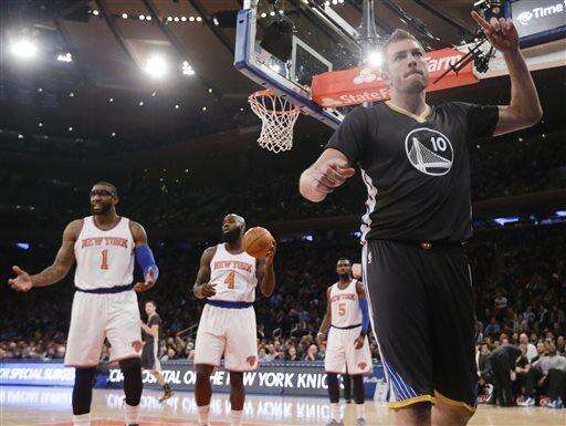 Warriors: Kerr said he and Phil Jackson had exchanged emails earlier Saturday and hoped to see each other while the Warriors were in town. ... David Lee, who played for the Knicks from 2005-10, got a nice ovation when he checked into the game in the first quarter. He finished with 10 points and 10 rebounds.