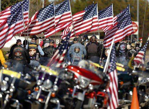 FILE - In this Friday, Feb. 8, 2013 file photo, Patriot Guard Riders prepare to form a procession for Chad Littlefield during his funeral at the First Baptist Church of Midlothian, Texas. Littlefield and former Navy SEAL sniper Chris Kyle found dead at a gun range on Feb. 2, 2013. Former Marine Eddie Ray Routh, who came with them to the range, has been arrested for the murders. (AP Photo/The Dallas Morning News, Michael Ainsworth)