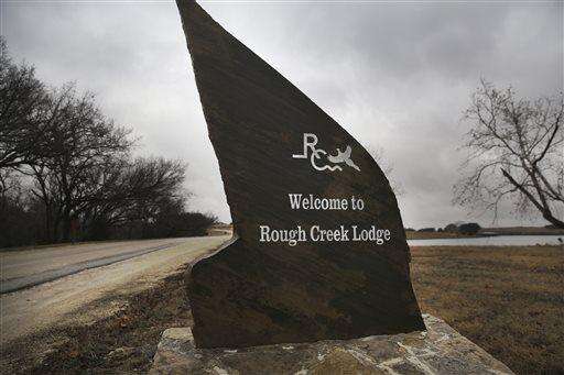 This Thursday, Jan. 22, 2015 photo shows the front entrance of the Rough Creek Lodge resort near Glen Rose, Texas. Eddie Ray Routh, an Iraq war veteran who was battling post-traumatic stress disorder and other personal issues is scheduled to stand trial in nearby Stephenville, Texas in the slayings of two men who were trying to help him, former Navy SEAL sniper Chris Kyle and Chad Littlefield. The two were found dead at the gun range here on Feb. 2, 2013. (AP Photo/LM Otero)