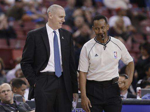 Dallas Mavericks coach Rick Carlisle smiles as he talks with official James Capers during the fourth quarter of the Mavericks' NBA basketball game against the Sacramento Kings in Sacramento, Calif., Thursday, Feb. 5, 2015. The Mavericks won 101-78. (AP Photo/Rich Pedroncelli) The Associated Press
