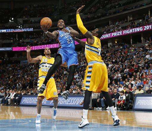 Oklahoma City led by as many as 22 early on, but a 13-4 spurt by the Nuggets midway through the second period helped narrow the gap.