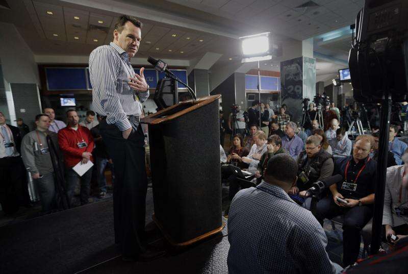 Denver Broncos coach Gary Kubiak answers a question Wednesday during a news conference at the NFL football scouting combine in Indianapolis. Associated Press