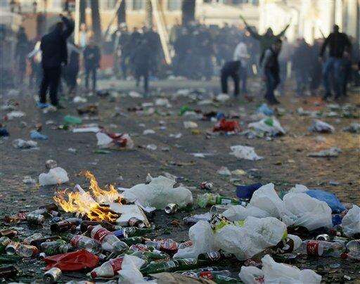 Ahead of Thursday's Europa League match between Feyenoord and Roma, Dutch fans pounded the famed Fountain of the Barcaccia with beer bottles and unopened cans. Their actions damaged the travertine fountain that was unveiled only in September after a 200,000 euro ($227,000) restoration project, terrorized tourists and littered one of Rome's most upscale neighborhoods.