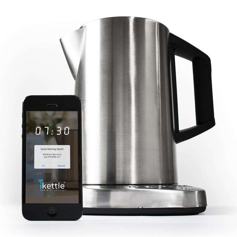 • Many of the new smartphone-run appliances are all about smoothing out daily routines — especially the morning scramble. With the world's first Wi-Fi kettle, the iKettle, you can turn on your hot water before you even get out of bed ($150, www.firebox.com). “It knows what temperature is best for coffee versus tea, and will even ask you if you'd like to put the kettle on when your alarm goes off,” Matthews says. The kettle will keep the water warm for 30 minutes after boiling. Buy an optional colored skin for even more insulation. (Note: The kettle comes with a U.K. plug and requires a transformer for U.S. usage.)