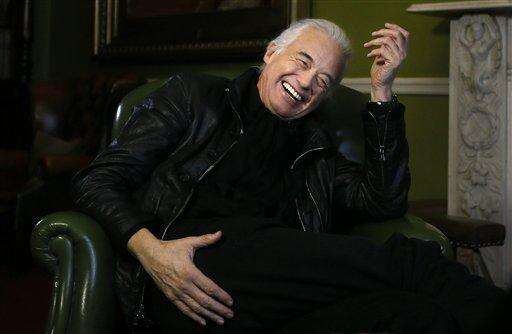 In this picture taken Thursday, Feb. 5, 2015, British musician Jimmy Page of rock group Led Zeppelin, laughs during an interview with Associated Press in London. Jimmy Page started the project because he couldnât believe how bad Led Zeppelin sounded. The legacy of the band heâd devoted much of his life to was being muddied by the way its classic studio albums sounded when reproduced on the ubiquitous MP3 players that are popular today. Instead of accepting that future generations would have to hear a cramped, compressed version of Led Zepâs sonic booms, Page has devoted several years to completely re-mastering the bandâs extensive catalog in a labor of love that is, with the release of âPhysical Graffitiâ on Tuesday, Feb. 24, 2015. (AP Photo/Kirsty Wigglesworth)