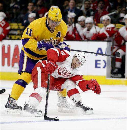 NOTES: Henrik Zetterberg missed his second straight game because of a head injury. ... Detroit assistant coach Tony Granato, who played six-plus seasons with the Kings and scored 37 goals in 1992-93 to help get them to the Stanley Cup Finals, was honored in a pregame ceremony as the club continued its "Legends Night" series. ... Quick has made a career-high 15 consecutive starts. ... Los Angeles was 1 for 17 on the power play in its previous seven games before Williams connected for the fourth time this season. ... Kopitar has one goal in his last 14 games. ... The Kings signed C Jordan Nolan to a three-year, $2.85 million extension.