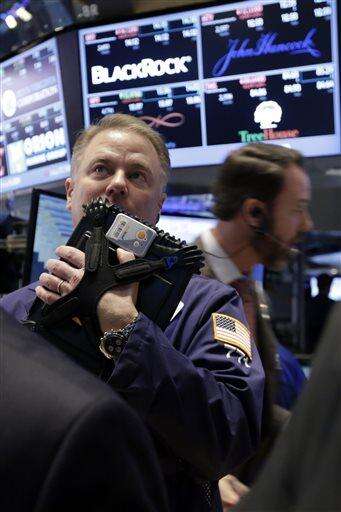 Trader Christopher Lotito works on the floor of the New York Stock Exchange, Thursday, Feb. 26, 2015. U.S. financial markets drifted in morning trading Thursday, with energy stocks among the biggest decliners as crude oil prices fell. Investors were weighing new economic data on unemployment benefit claims, consumer prices and orders for long-lasting manufactured goods. (AP Photo/Richard Drew)