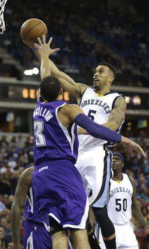 Memphis Grizzlies guard Courtney Lee, center, drives to the basket against Sacramento Kings guard Ray McCallum, left, during the first quarter of an NBA basketball game Wednesday, Feb. 25 2015, in Sacramento, Calif. (AP Photo/Rich Pedroncelli) The Associated Press