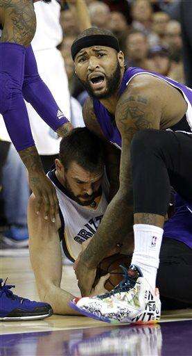 Sacramento Kings center DeMarcus Cousins, left, and Memphis Grizzlies center Marc Gasol, of Spain, battle for the ball during the first quarter of an NBA basketball game Wednesday, Feb. 25 2015, in Sacramento, Calif. (AP Photo/Rich Pedroncelli) The Associated Press