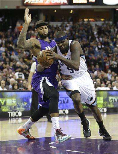 Memphis Grizzlies forward Zach Randolph, right, drives to the basket against Sacramento Kings center DeMarcus Cousins during the first quarter of an NBA basketball game Wednesday, Feb. 25, 2015, in Sacramento, Calif. (AP Photo/Rich Pedroncelli) The Associated Press