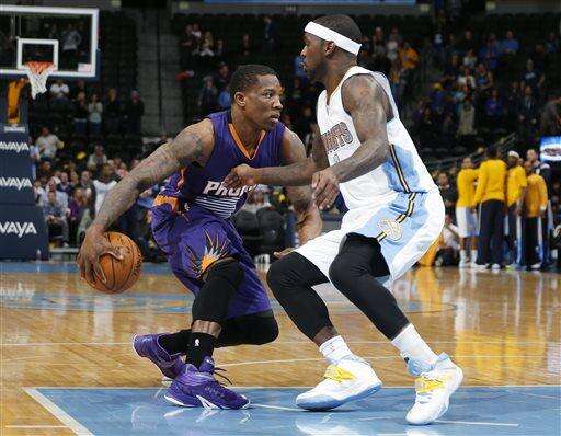 Phoenix Suns guard Eric Bledsoe, left, works against Denver Nuggets guard Ty Lawson during the first quarter of an NBA basketball game Wednesday, Feb. 25, 2015, in Denver. (AP Photo/David Zalubowski) The Associated Press