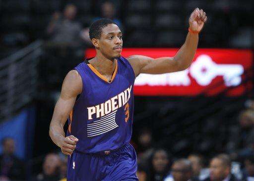 Phoenix Suns guard Brandon Knight reacts after hitting a 3-point basket against the Denver Nuggets late in the fourth quarter of an NBA basketball game Wednesday, Feb. 25, 2015, in Denver. The Suns won 110-96. (AP Photo/David Zalubowski) The Associated Press