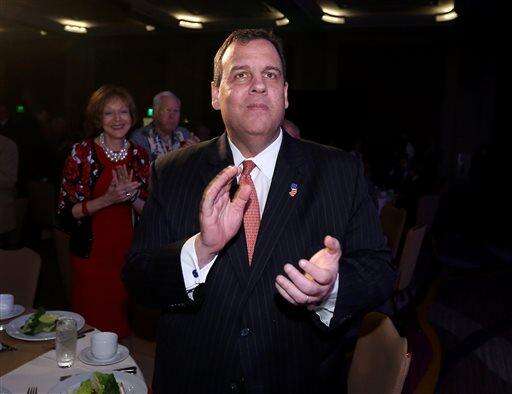 New Jersey Gov. Chris Christie pauses as he addresses delegates at the California Republican Party Spring 2015 Organizing Convention in Sacramento, Calif., Saturday, Feb. 28, 2015, Christie told the crowd of about 500 lunch guests that the party should not rush into choosing a 2016 presidential nominee because of pressure from pundits and donors.(AP Photo/Rich Pedroncelli)