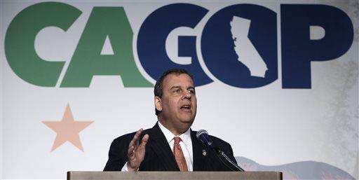 New Jersey Gov. Chris Christie addresses delegates at the California Republican Party Spring 2015 Organizing Convention in Sacramento, Calif., Saturday, Feb. 28, 2015.(AP Photo/Rich Pedroncelli)