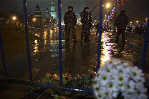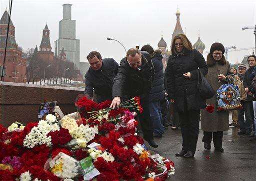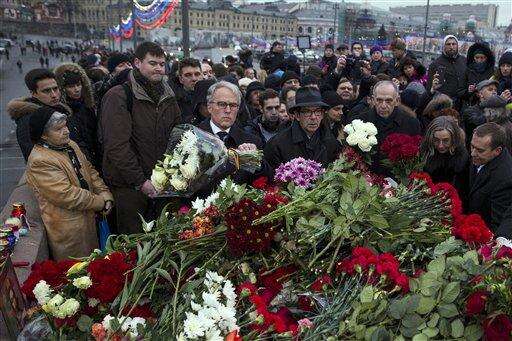 Through the day, hundreds of people came to the site of Nemtsov's death to lay flowers, among them the ambassadors of the U.S. and many European countries.