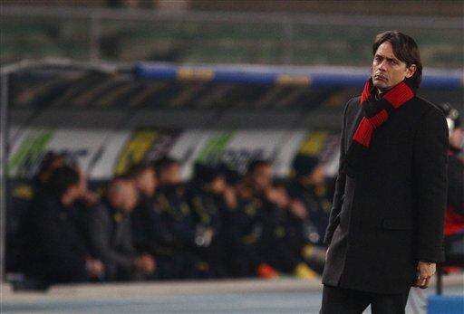 AC Milan coach Filippo Inzaghi stands on the pitch during a Serie A soccer match between Chievo and AC Milan at Bentegodi stadium in Verona, Italy, Saturday, Feb. 28, 2015. (AP Photo/Felice Calabro') The Associated Press