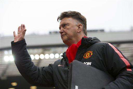 Manchester United's manager Louis van Gaal waves as he takes to the touchline before his team's English Premier League soccer match between Manchester United and Sunderland at Old Trafford Stadium, Manchester, England, Saturday Feb. 28, 2015. (AP Photo/Jon Super) The Associated Press