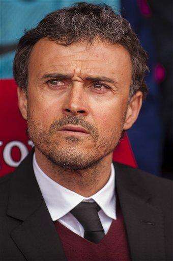 Barcelona's coach Luis Enrique waits for the start of a Spanish La Liga soccer match between Granada and FC Barcelona at Los Carmenes stadium in Granada, Spain, Saturday Feb. 28, 2015. (AP Photo/Daniel Tejedor) The Associated Press