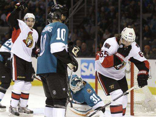 Senators beat Sharks 4-2 for 5th straight victory