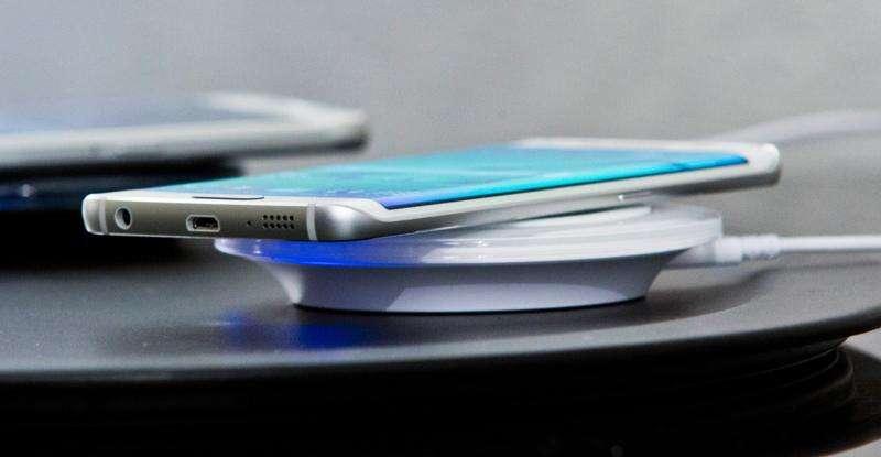 One of two new Samsung phone, Galaxy S6 Edge, is shown on a wireless charger at a special press preview Feb. 23 in New York. Associated Press