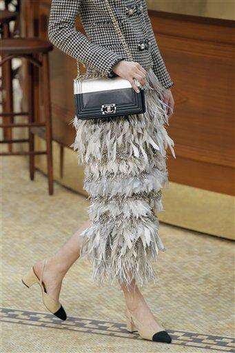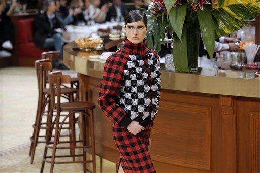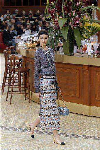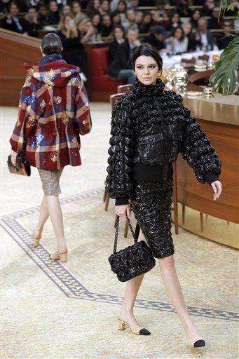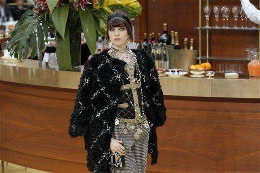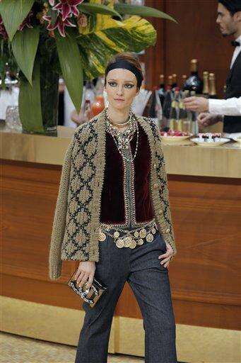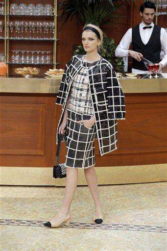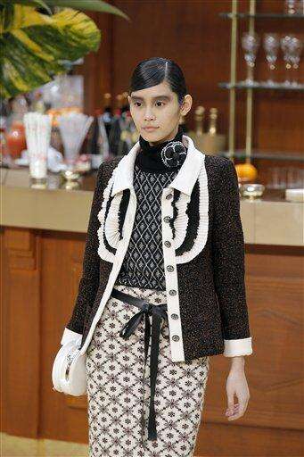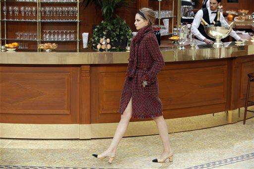 A model wears a creation for Chanel's ready to wear fall-winter 2015-2016 fashion collection presented during the Paris fashion week, in Paris, France, Tuesday, March 10, 2015. (AP Photo/Francois Mori)