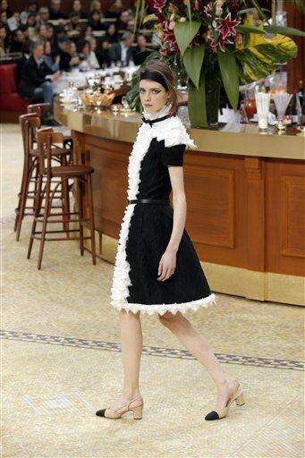 His designs showed off outstanding details. The black-and-white '50s block shoe - a black toe on a thick square heel - defined the show, a look that Lagerfeld resurrected from the Coco Chanel archive for the first time ever.