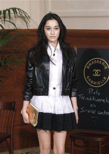 Japanese model Saila Kunikida poses for photographers on arrival at Chanel's ready to wear fall-winter 2015-2016 fashion collection during Paris fashion week, Paris, France, Tuesday, March 10, 2015. (AP Photo/Thibault Camus)