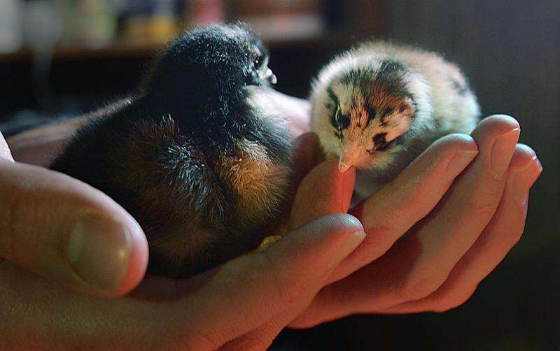 Pete and Katie Mangan drove to a hatchery in Waterloo, Wisconsin, Monday morning to get the 4-day-old chicks, which seemed to be no worse for the wear that afternoon after enduring the 111-mile trip.