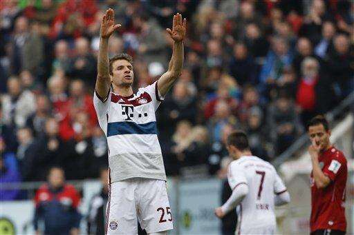 Bayern Munich striker Thomas Mueller was third after also scoring twice in a 3-1 win at Hannover. Mueller's strikes allowed Pep Guardiola's team to extending its Bundesliga lead to 11 points with Wolfsburg losing 1-0 to Augsberg.