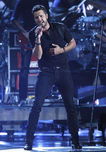 FILE - In this Nov. 5, 2014 file photo, Luke Bryan performs at the 48th annual CMA Awards in Nashville, Tenn. Bryan joins Garth Brooks, Miranda Lambert, Jason Aldean and George Strait on the list of performers for the Academy of Country Music's 50th awards show on April 19. (Photo by Wade Payne/Invision/AP, File)