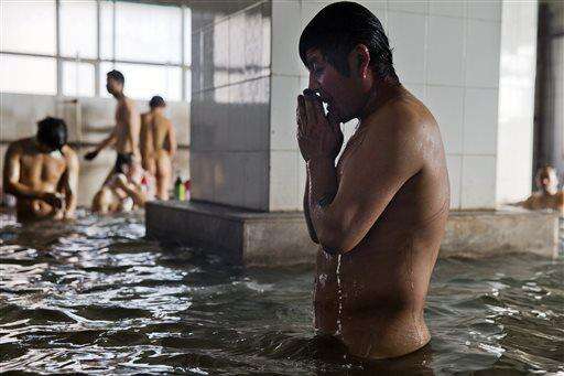 EDITORS NOTE: NUDITY - In this Feb. 6, 2015 photo, coal miners wash up after their eight hours shift at a coal mine in Gujiao in northern China's Shanxi province. Chinaâs coal production is estimated by its main industry group to have fallen 2.5 percent last year, the first reduction in two decades. Environmentalists welcomed that as a sign coal use might decline, but it prompted unease about the health of an industry that the Ministry of Land and Resources says employs 10.3 million people. (AP Photo/Ng Han Guan)