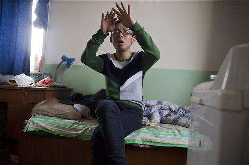 In this Feb. 6, 2015 photo, Fu Senjie talks about his work as a coal miner in Gujiao in northern China's Shanxi province. Two years ago, Fu was paid up to 7,000 yuan ($1,100) a month, working eight- and 12-hour shifts underground in this town in Shanxi province, 550 kilometers (350 miles) southwest of Beijing. But as growth ground steadily lower, coal prices fell, and so did wages. Now, the slender, bespectacled 25-year-old said he works the same hours for half the pay.(AP Photo/Ng Han Guan)