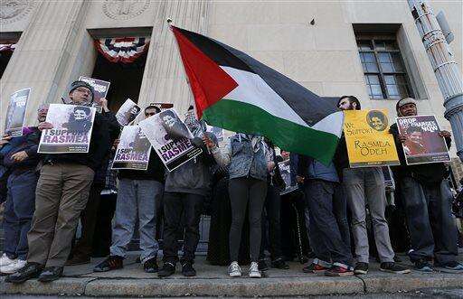 Odeh helps run Chicago's Arab American Action Network, an education and social services agency, and more than 100 supporters filled the courtroom or spilled over into another room to watch a video feed of the hearing. Many took a bus or car-pooled from Illinois, then marched and chanted in front of the courthouse while waving Palestinian flags.