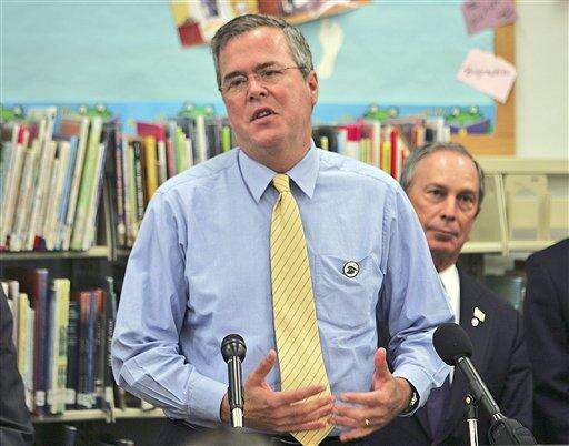 FILE - In this Dec. 4, 2006, file photo, then-Florida Gov. Jeb Bush talks about Florida's educational programs as New York Mayor Michael Bloomberg listens, right, at an elementary school in Miramar, Fla. Among the many thousands of emails Bush received as Florida governor are a string of notes from campaign donors asking for favors and making suggestions. Invariably, Bush responded politely. Sometimes, he appointed a person a donor had recommended. Other times, he rejected their advice about a piece of legislation. It’s an insight into Bush’s work as governor that's only possible because his emails are available for review, something not yet possible for those sent and received by Hillary Rodham Clinton as secretary of state. (AP Photo/J. Pat Carter, File) The Associated Press