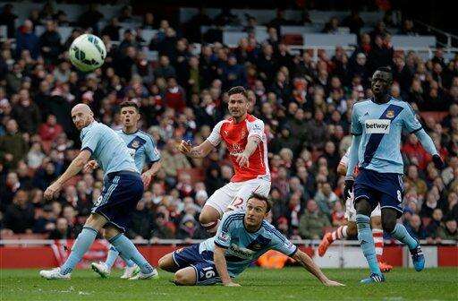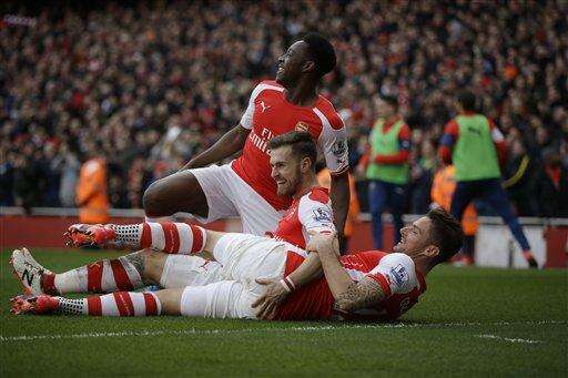 Giroud set Arsenal on its way to an eighth straight home win by smashing in a left-foot shot off the post in first-half injury time. The France striker provided the square ball that Ramsey steered home in the 81st before Flamini added a third in the 84th.