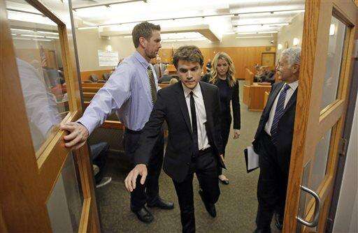 Hirsch, who turned 30 on Friday, was clean-shaven and wore a tight-fitting black suit with a white shirt and black tie. He stared straight ahead as he walked through a small gaggle of reporters, photographers and onlookers at the courthouse. He was flanked by two attorneys and a friend.