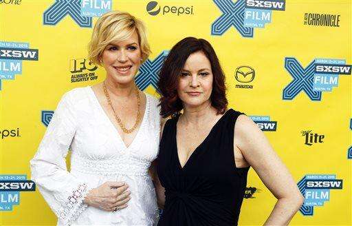 Molly Ringwald, right, and Ally Sheedy talk to the media on the red carpet for "The Breakfast Club" 30th Anniversary Restoration World Premiere during the South by Southwest Film Festival on Monday, March 16, 2015 in Austin, Texas. (Photo by Jack Plunkett/Invision/AP)