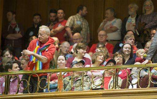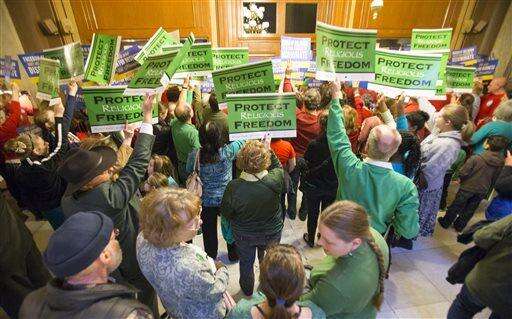 INDIANAPOLIS (AP) - Rallies drawing hundreds of people on both sides of a contentious proposal that could allow people to cite strong religious beliefs to deny services for activities such as same-sex weddings didn't seem to change any minds among Indiana legislators Monday.