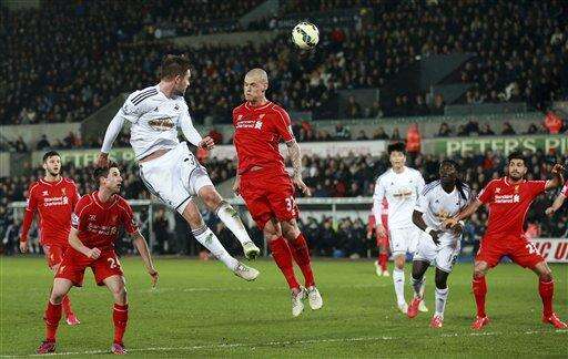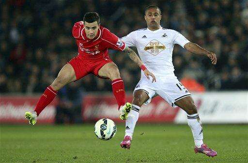 He raced onto a neat flick by Daniel Sturridge but was beaten to the ball by Swansea defender Jordi Amat, whose sliding clearance hit Henderson. The ball skimmed off the wet surface and ballooned over Lukasz Fabianski.