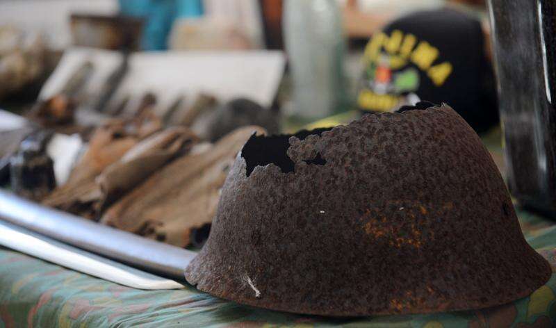 "There's nothing of any great value," said Thompson, a military collector who stores his 2,000 or so items in a warehouse in Chicago, "but I did buy a Japanese samurai sword from Iwo Jima veterans."