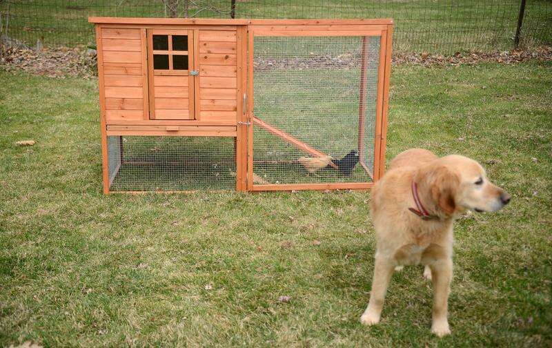 Peter Mangan's dog, Jones, now has to share his backyard with chickens. Rick West/rwest@dailyherald.com