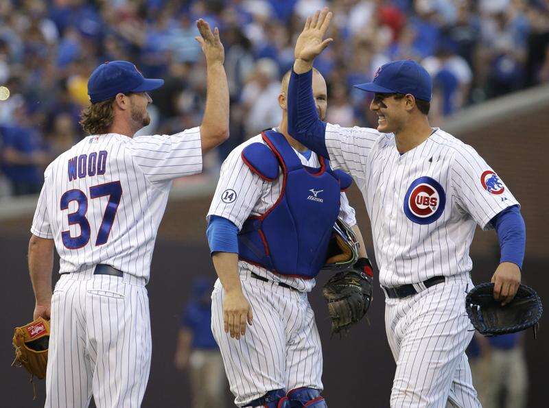 Starlin Castro, another of the Cubs' young core, chipped in with 2 RBI. Bryant and Rizzo singled back to back in the first, and Castro hit a sacrifice fly. Bryant walked and Rizzo singled and stole a base in the third, with Castro driving Bryant home on a forceout.